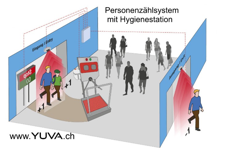 Regulieren Sie Ihr Geschäft durch einen Personenaufenthalt Zäher und einer Hygienenstation.